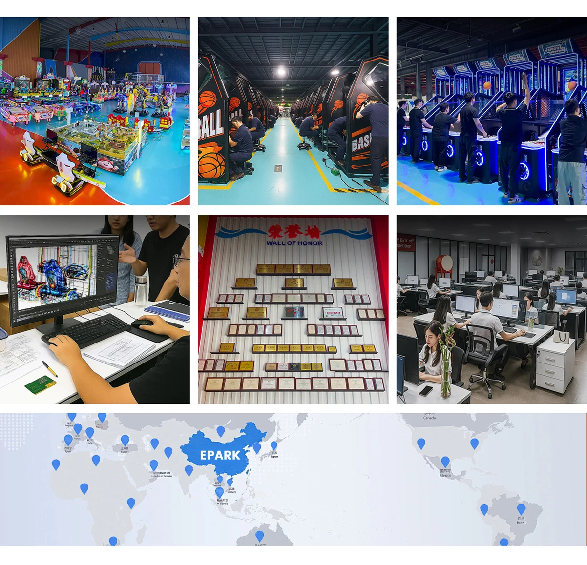 EPARK is located in Panyu, Guangzhou, with a 25,000 square meter showroom and factory, more than 13 years of responsibility for manufacturing, supplying,and operating entertainment game machine.--Arcade Games, Soft Playground, VR Machine, 5D, 7D, 9D, 12D Cinema, Amusement Machine and so on. EPARK has been certified as a national high-tech enterprise. Product quality and safety are guaranteed.15,000m² factory, 500 Newest, Interesting, good quality arcade games.Provide you with a one-stop solution.There's a reliable & professional team waiting to make a wonderful park for you!